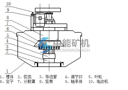 3. The impeller has shallow immersion depth, low peripheral speed, low power consumption, wide range of particle sizes that can be processed, and high mineral processing recovery rate.